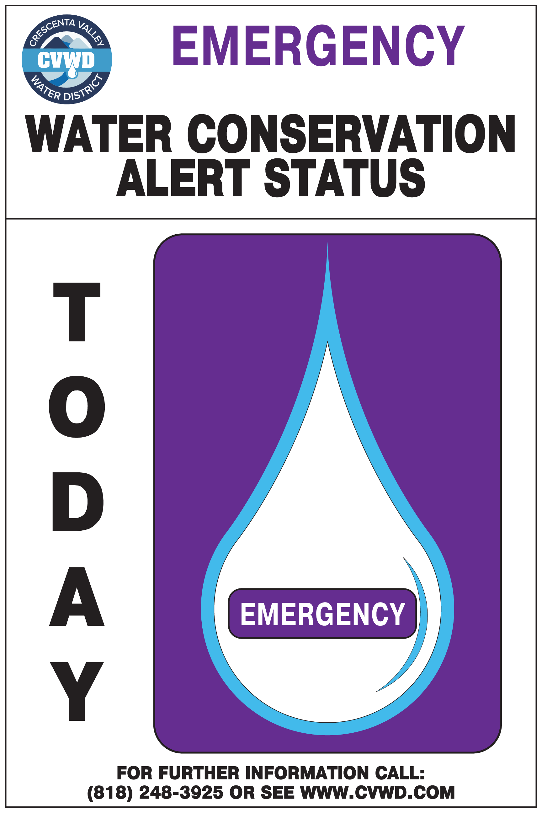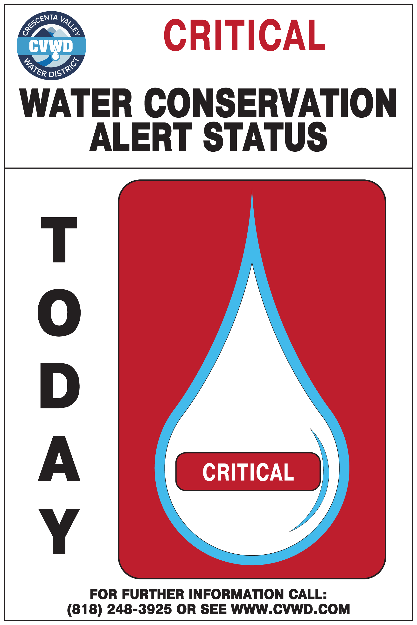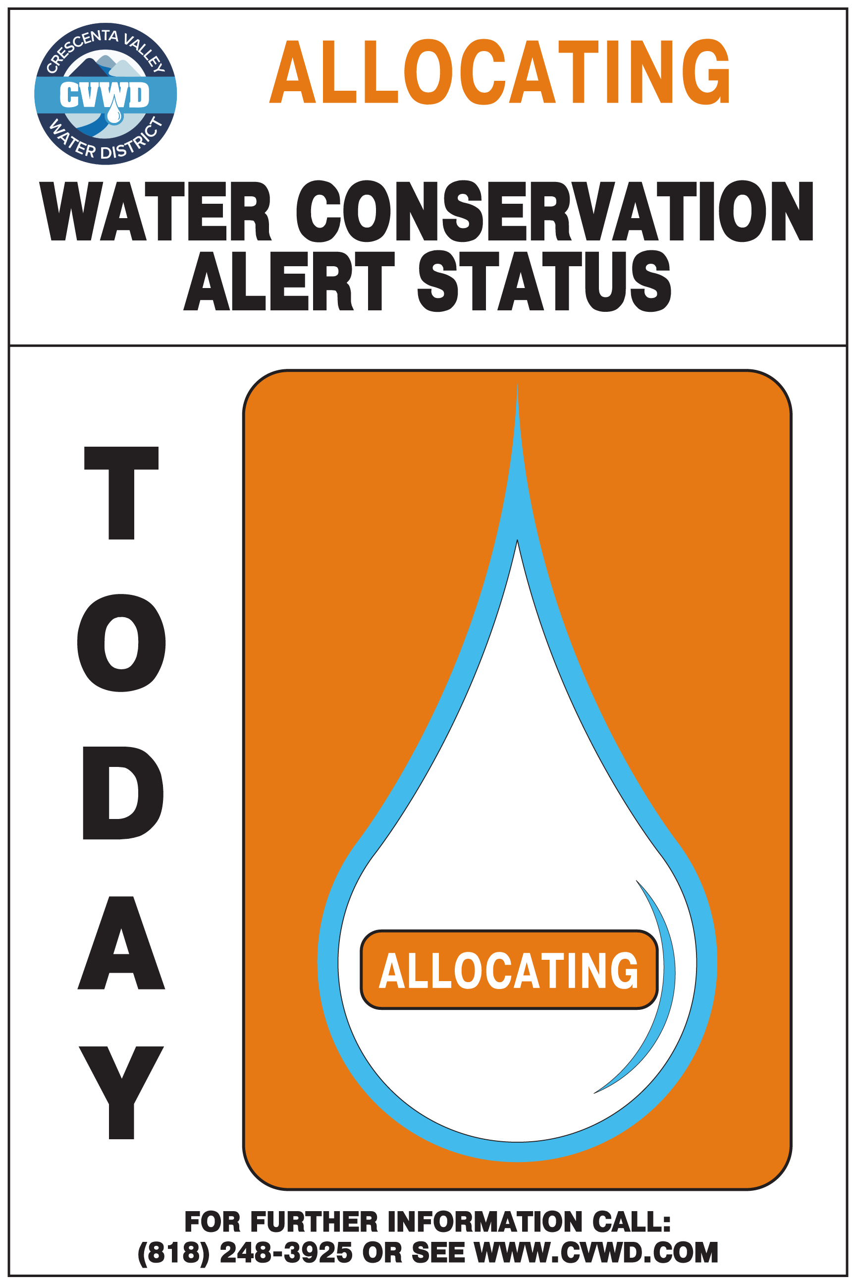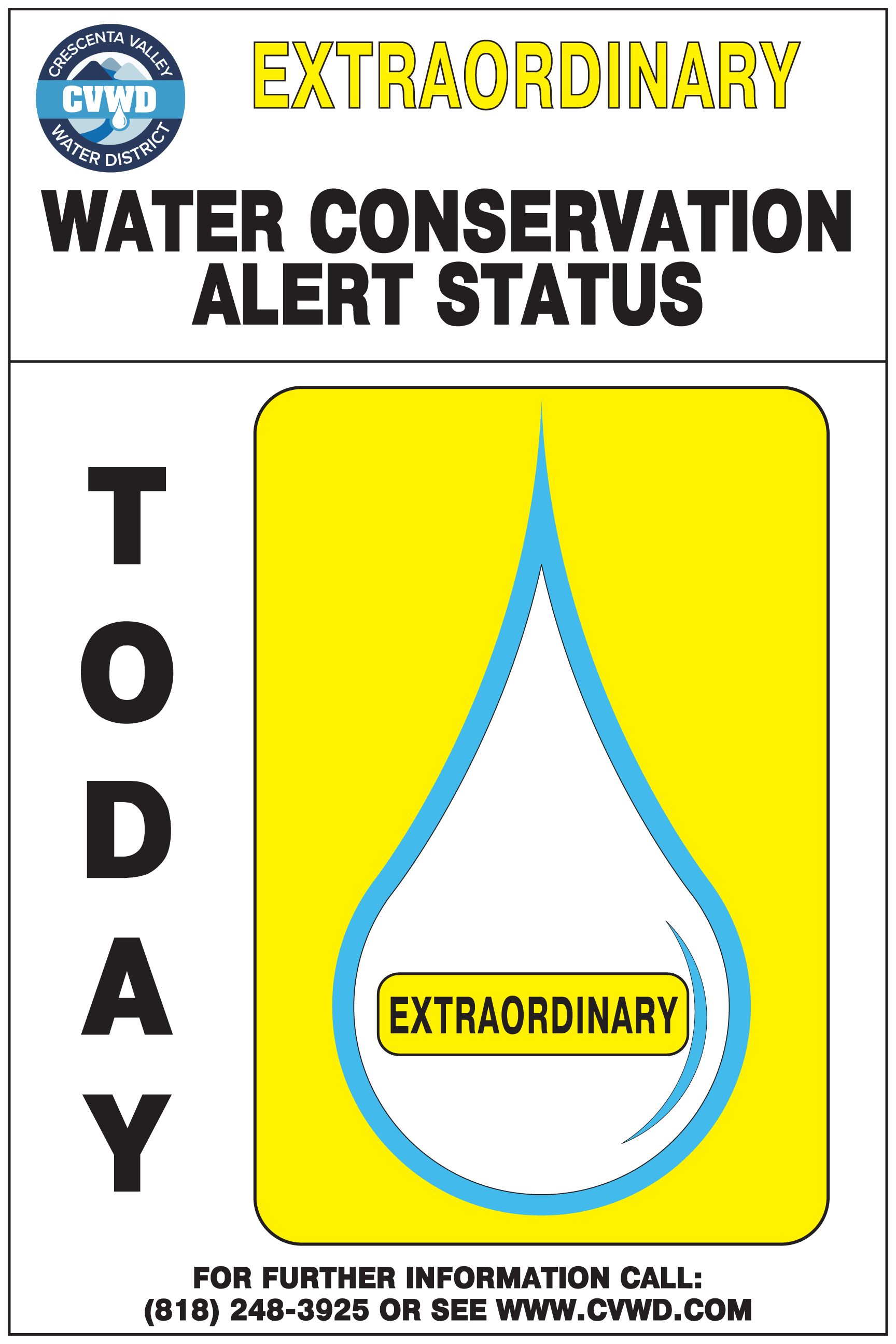 Notification of the Water Conservation Alert System status is posted at the exterior of the District’s Administration Office (2700 Foothill Blvd., La Crescenta) and throughout the District’s service area. This is only a summary of the regulations; detailed information is contained in the water shortage contingency plan (WSCP).