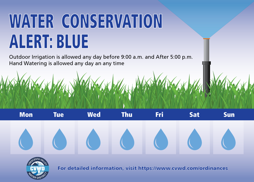 CVWD Moved from Stage 2 – Green Water Conservation Alert to Stage 1 – Blue Water Conservation Alert, effective May 20, 2024